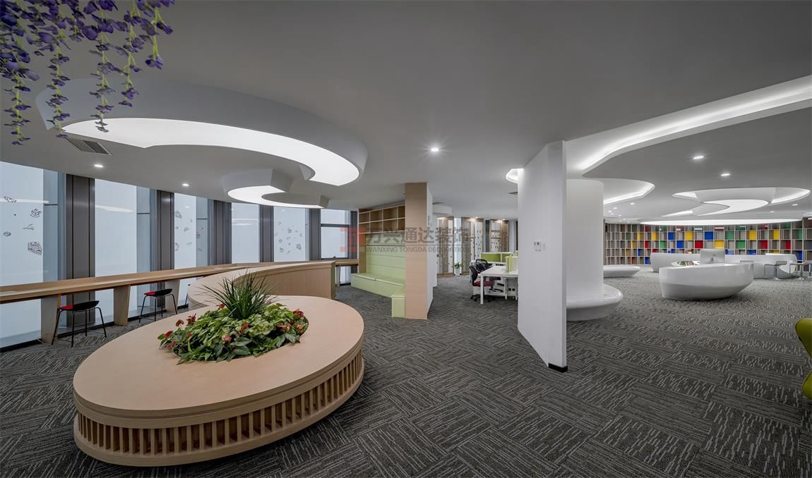 辦公室裝修公司案例:整體辦公空間設(shè)(shè)計(jì)(jì)中,大氣與細(xì)(xì)致并存,將設(shè)(shè)計(jì)(jì)與藝術(shù)(shù)結(jié)(jié)合。設(shè)(shè)計(jì)(jì)理念: 室內(nèi)(nèi)設(shè)(shè)計(jì)(jì)元素均交織凝聚于行云流水的曲線(xiàn)流動(dòng)(dòng)空間,設(shè)(shè)計(jì)(jì)表現(xiàn)(xiàn)形式不受拘束,每個(gè)(gè)空間都有自己特殊的弧度,致力于搭建“創(chuàng)(chuàng)新+智能+生態(tài)(tài)”的辦公環(huán)(huán)境。